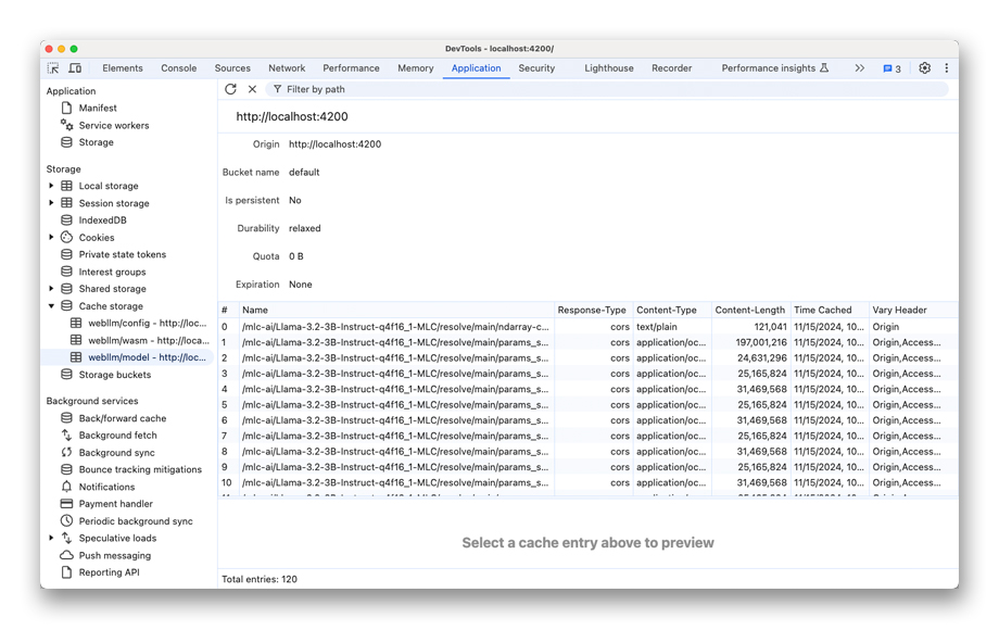 После загрузки WebLLM считывает файлы модели из Cache API, а не запрашивает их по сети, что делает WebLLM полностью автономным.