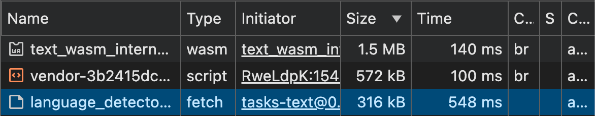 • Molti modelli di IA specifici per attività possono essere molto piccoli. Un modello come BudouX, per l'interruzione accurata dei caratteri nelle lingue asiatiche, ha un solo 9,4 KB compresso con GZIP. Il modello di rilevamento della lingua di MediaPipe è di 315 KB.