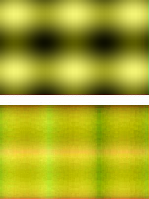 devicePixelRatio fracionários devido ao zoom.Vamos adicionar o elemento <canvas> a esse cenário. Você pode especificar quantos pixels quer que a tela tenha usando os atributos width e height. Assim, <canvas width=40 height=30> seria uma tela com 40 por 30 pixels. No entanto, isso não significa que ele será mostrado em 40 por 30 pixels. Por padrão, a tela usa os atributos width e height para definir o tamanho intrínseco, mas é possível redimensionar arbitrariamente a tela usando todas as propriedades de CSS que você conhece e adora. Com tudo o que aprendemos até agora, talvez você perceba que isso não é ideal em todos os cenários. Um pixel na tela pode acabar cobrindo vários pixels físicos ou apenas uma fração de um pixel físico. Isso pode levar a artefatos visuais desagradáveis.