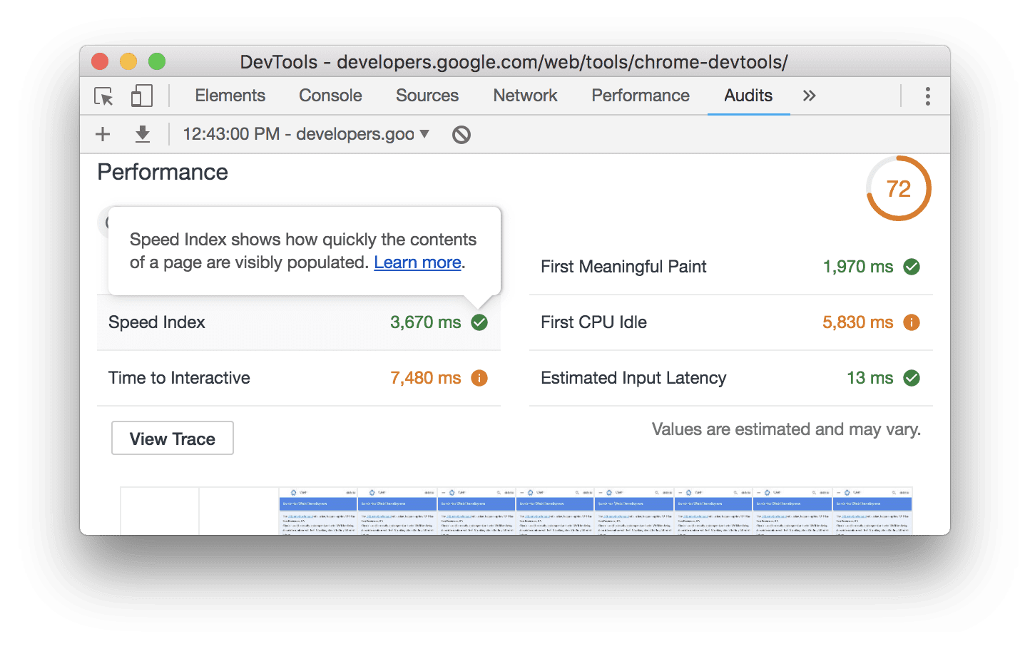你的任務是隨著時間改善指標分數,或至少確保分數不會變差。不過,您無法直接處理指標。 而是根據 Lighthouse 提供的機會進行調整。著手處理這些商機,通常有助於提高指標分數。