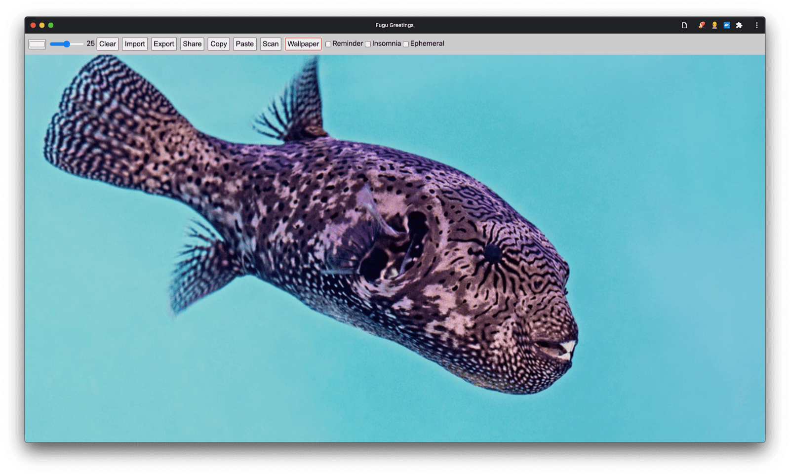 Neste documento, trabalho com um PWA chamado Fugu Greetings (GitHub). O nome deste app é uma homenagem ao Projeto Fugu 🐡, uma iniciativa para dar à Web todos os recursos dos aplicativos Android, iOS e para computador. Saiba mais sobre o projeto na página de destino.