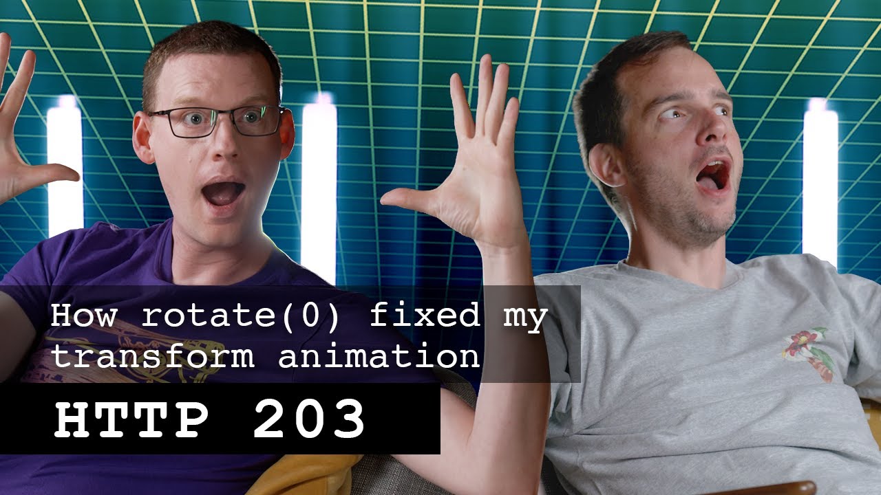 Jake y Bramus conversan sobre las animaciones de transformación, en particular sobre cómo "rotate(0)" puede comportarse de manera diferente que "none".